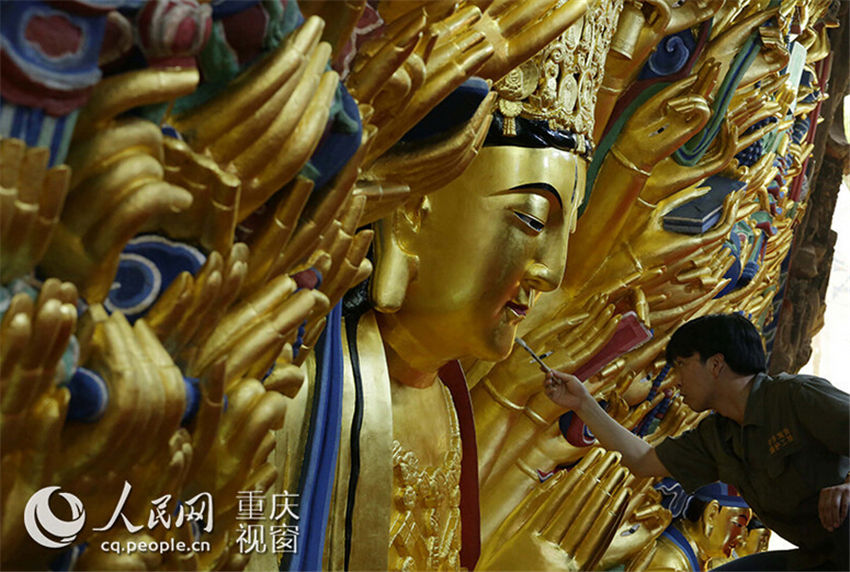 重慶市大足県にある仏教石窟?大足石刻(だいそくせっこく)のうち、千手観音菩薩の修復(fù)作業(yè)がこのほど終了。13日に約8年ぶりに一般公開され、雨の中、約1萬人が訪れた。約800年の歴史を誇る大足石刻の修復(fù)には、7年の歳月と數(shù)千萬元の費(fèi)用がかけられた。中國新聞網(wǎng)が報(bào)じた。