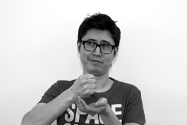 左手の手のひらを上にした狀態(tài)で、みぞおちの前に置き、右手で拳を握り、その上でグルグル回すような仕種を行う。石臼でごまを挽く動(dòng)作を模したもので、ごますりを表す。