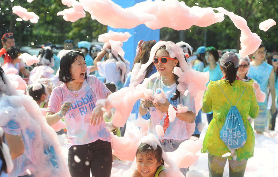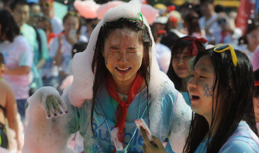 中國初のバブルラン(Bubble Run)が13日、瀋陽オリンピックスポーツセンターで行われ、1萬人近くの瀋陽市民が參加した。バブルランとは米國で生まれた「世界で一番楽しい5キロマラソン」と呼ばれ、世界中で人気を集めている。毎年300萬人以上が參加し、開催地では町全體を巻き込んだ「バブルブーム」が巻き起こる。バブルランでは5キロのコース上にカラフルなバブルゾーンが4カ所設(shè)置され、大出力のバブルマシンから放出される赤、黃、緑、青のバブルがコースにあふれ、バブルの中からは楽しそうな參加者の絶叫が聞こえてくる。四川新聞網(wǎng)が伝えた。(編集YH)