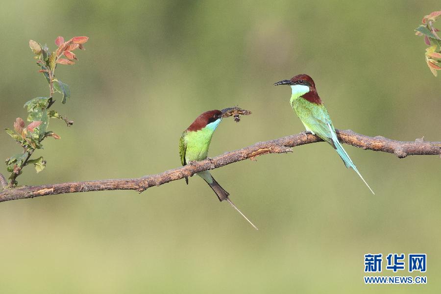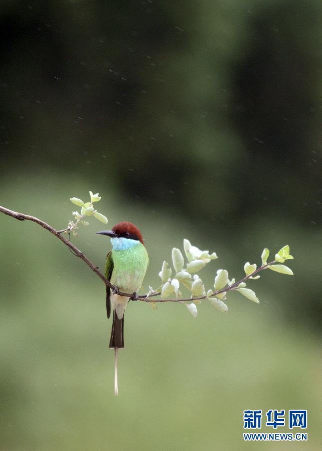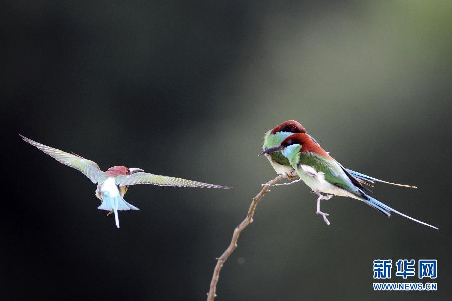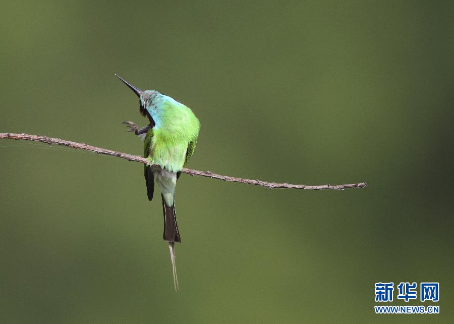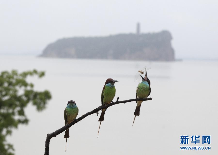 寫真は14日、鄱陽湖畔の木の枝の上で休むルリノドハチクイ。夏の訪れを迎え、中國で最大の淡水湖である江西省の鄱陽湖畔にある九江市廬山區(qū)姑塘鎮(zhèn)には數(shù)多くの美しいルリノドハチクイ(Merops viridis)が訪れている。ルリノドハチクイはハチクイ科の鳥で、色鮮やかな羽毛の色が美しい。新華社が伝えた。(編集YH)