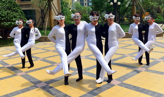 半身が黒で半身が白のダンスのファッションを身にまとい、銀色の仮面を著けた河南省洛陽市に住む中年女性たちが、背中で腕を組んで足を伸ばしながら歩き、時々に隊形やポーズを変えながら踴る様子は、まるでピアノの鍵盤のようで、錯覚を覚えそうだ。中國新聞網が15日付で伝えた。(編集YH)