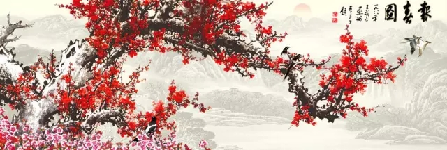 梅の花は中國の水墨畫で蘭、竹、菊と並んで「中國畫の四君子」と呼ばれる。梅は控えめで世俗的ではなく、寛大な精神性の象徴で、春の訪れを告げる使者と呼ばれる。雪の中で寒さに負(fù)けずに芳しく咲く強(qiáng)い意志は、恐れを知らず果敢に開拓し、素晴らしい生活と文明を生み出してきた何世代にもわたる中國人を勵(lì)ましてきた。紅梅報(bào)春は縁起のよい、幸福や美しさの寓意を持つ。
