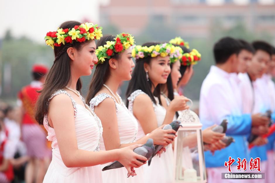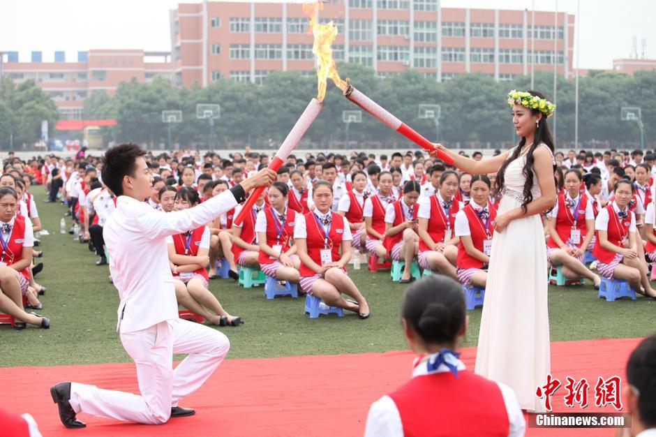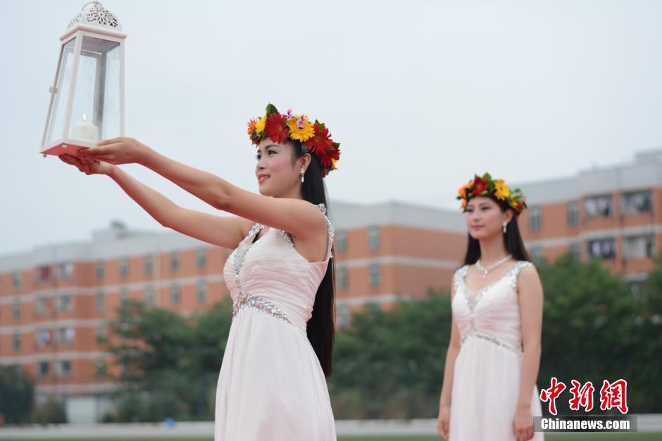 清らかな妖精に扮した8人が希望のたいまつを手に、同級(jí)生の目の前に現(xiàn)れた。彼女たちは客室乗務(wù)員(CA)専攻の卒業(yè)生4人と、既に航空會(huì)社でCAとして働く4人からなる。彼女たちはグラウンドの中央で、平和や友情、健康、希望、夢(mèng)などのシンボルのハトを手に捧げ、たいまつを燈した。中國新聞網(wǎng)が伝えた。(編集YH)