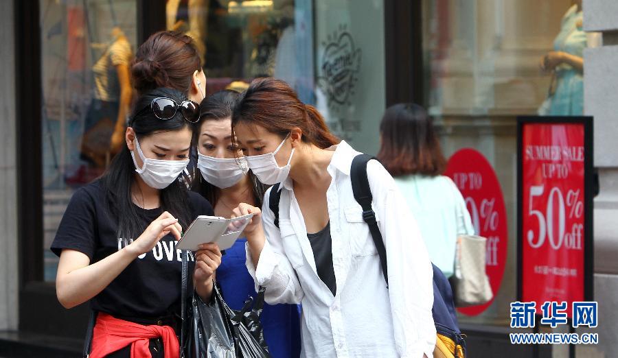 寫真は韓國?ソウルで16日、明洞ショッピングエリアで買い物をする人。韓國観光発展局の最新データによると、外國人観光客10萬人以上が中東呼吸器癥候群(MERS)を懸念して韓國旅行を中止したという。新華網(wǎng)が伝えた。(編集YH)