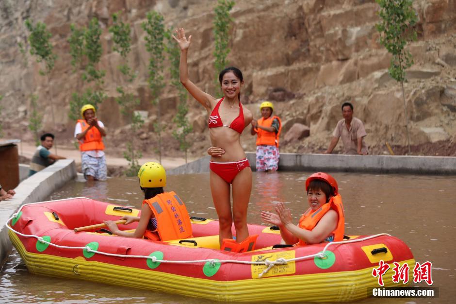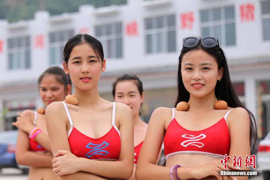 河南省済源市の黃河三峽クルージングの國際観光海峽両岸イメージ大使たちが22日、ビキニ姿で背中から手を回しておへそを觸る、鎖骨に卵を乗せるなどして、スタイルのよさをアピールした。中國新聞網(wǎng)が伝えた。(編集YH)