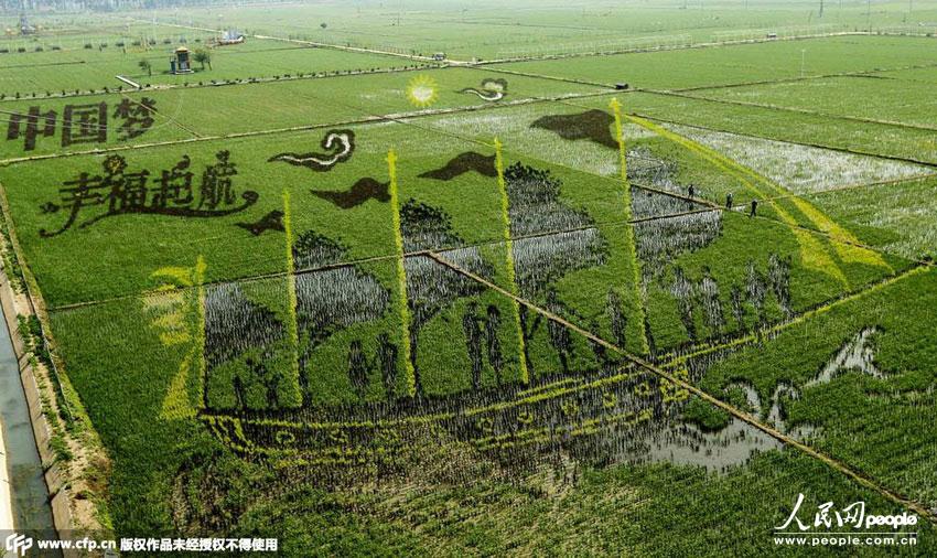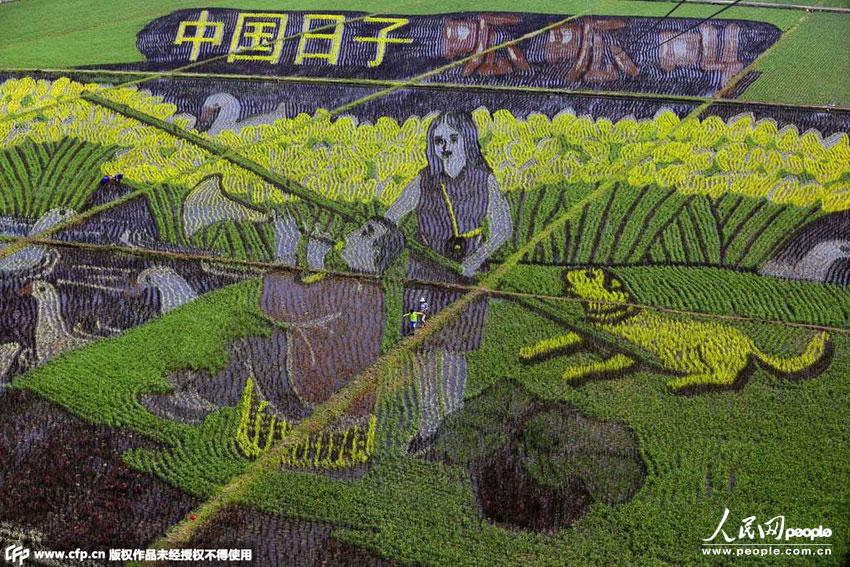 遼寧省瀋陽市では22日、敷地面積10ヘクタールにわたる巨大な田んぼアート「中國の生活 最高」、「中國の夢 幸福な出航」、「小さなモンロー」をテーマにした「3D田んぼアート」13點が瀋陽市瀋北新區(qū)興隆臺錫伯(シベ)族鎮(zhèn)にお目見えした。シベ族には田んぼアートで幸福を祈る伝統(tǒng)がある。田んぼアートではまず表現(xiàn)するデザインを決め、先進的な3D技術や透視技術を使い、ベクトル法を使って位置を決めて人工的に色を配色し、様々な品種の色の異なる稲を作付けて、平面的、立體的、透かし模様、線狀の4種類のスタイルの田んぼアートを生み出している。新華網(wǎng)が伝えた。(編集YH)