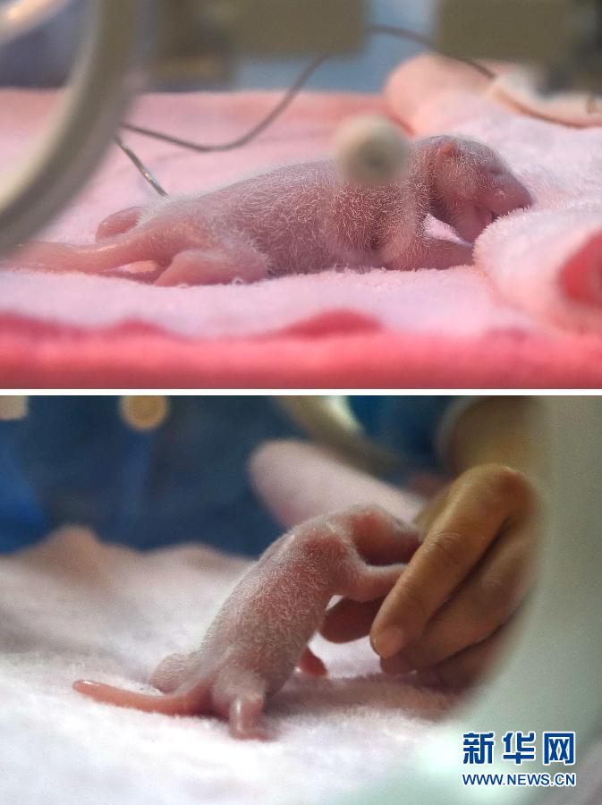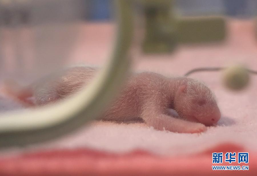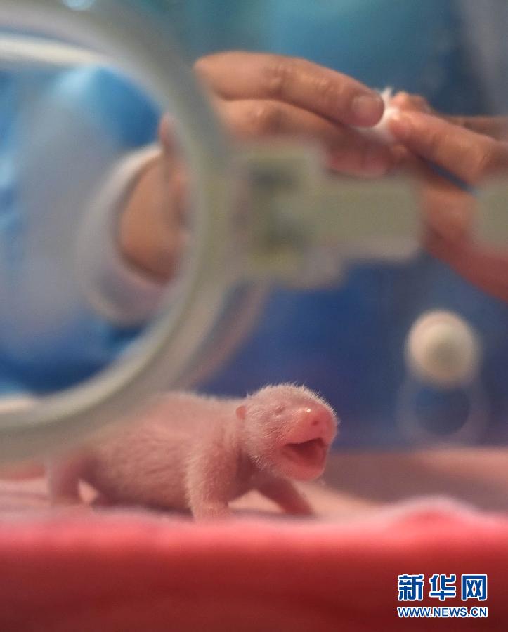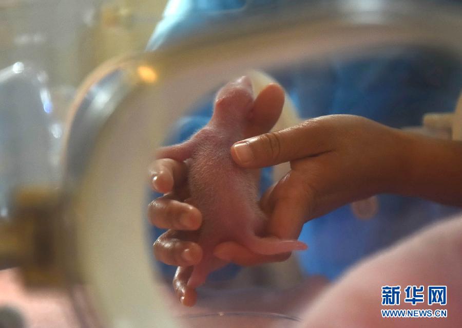寫真は23日、成都ジャイアントパンダ繁殖研究基地で撮影された、生まれたばかりのパンダの雙子のうちの1頭。成都ジャイアントパンダ繁殖研究基地のメスのパンダ「科琳」は22日5時10分頃、メスのパンダの雙子を出産した。これは2015年に誕生した世界初のパンダの雙子となる。新華網(wǎng)が伝えた。(編集YH)