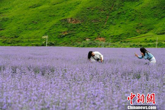 四川省松潘でラベンダーが開花、紫の花の海 (2)