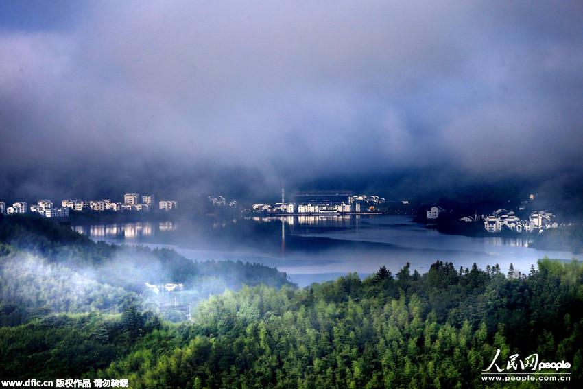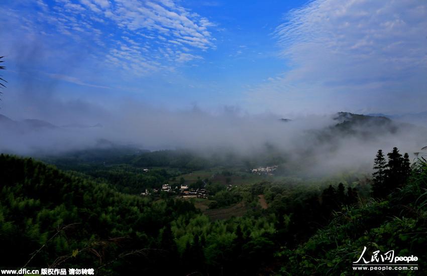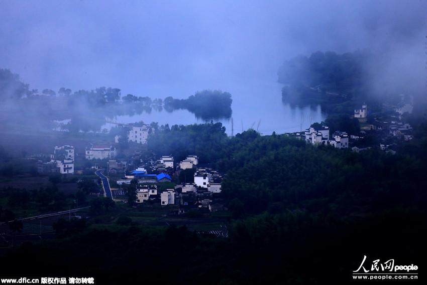 雨上がりの晴天が広がる安徽省黃山市黟県塔川古村落では23日、移流霧が発生した。同日早朝、安徽省の黃山麓にある黟県塔川古村落では降り続いた雨が上がり、今年に入ってからは珍しい移流霧が発生した。連なる安徽風(fēng)の民家が移流霧の中に見え隠れし、仙人郷のような風(fēng)景を見せた。人民網(wǎng)が伝えた。(編集YH)