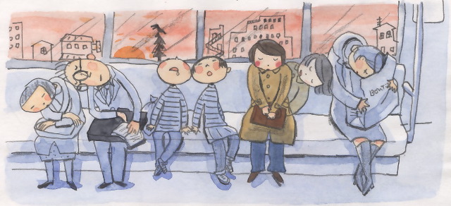 日本では、公共の場で寢ることはおかしなことではないため、誰もが寢ることを厭わない。郷に入れば郷に従えで、自然に寢てしまう。自分が見知らぬ人の肩に寄りかかってよだれを垂らしているのを見ても、まったく気にする様子もない。(編集MZ)