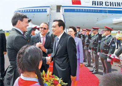 李克強(qiáng)総理は第17回中國(guó)?EU首脳會(huì)議出席のため、程虹夫人とともに現(xiàn)地時(shí)間28日午後、特別機(jī)でベルギーの首都ブリュッセルに到著した。空港ではEUとベルギー政府の高官のほか、中國(guó)の楊燕怡駐EU大使、曲星駐ベルギー大使が出迎えた。