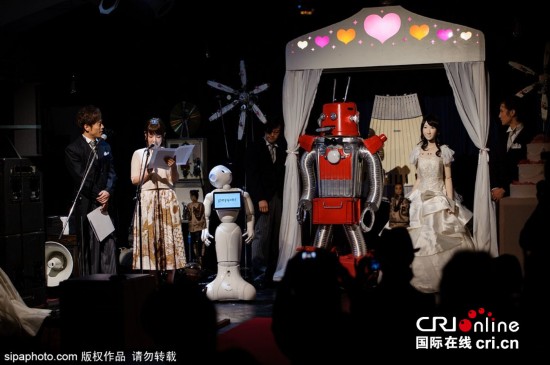 日本?東京の表參道では現(xiàn)地時(shí)間の27日、日本初のロボットの結(jié)婚式がCayカフェで行われた。ロボットのカップルが人間や多くのロボットが祝福する中で結(jié)ばれた。國際在線が伝えた。(編集YH)寫真出典:sipaphoto