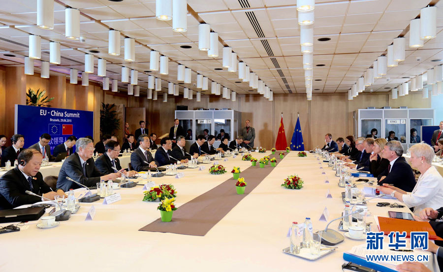 李克強(qiáng)総理は現(xiàn)地時(shí)間29日午後、ブリュッセルの歐州理事會(huì)本部でトゥスクEU大統(tǒng)領(lǐng)、ユンケル歐州委員長(zhǎng)と第17回中國(guó)?EU首脳會(huì)議を行った。