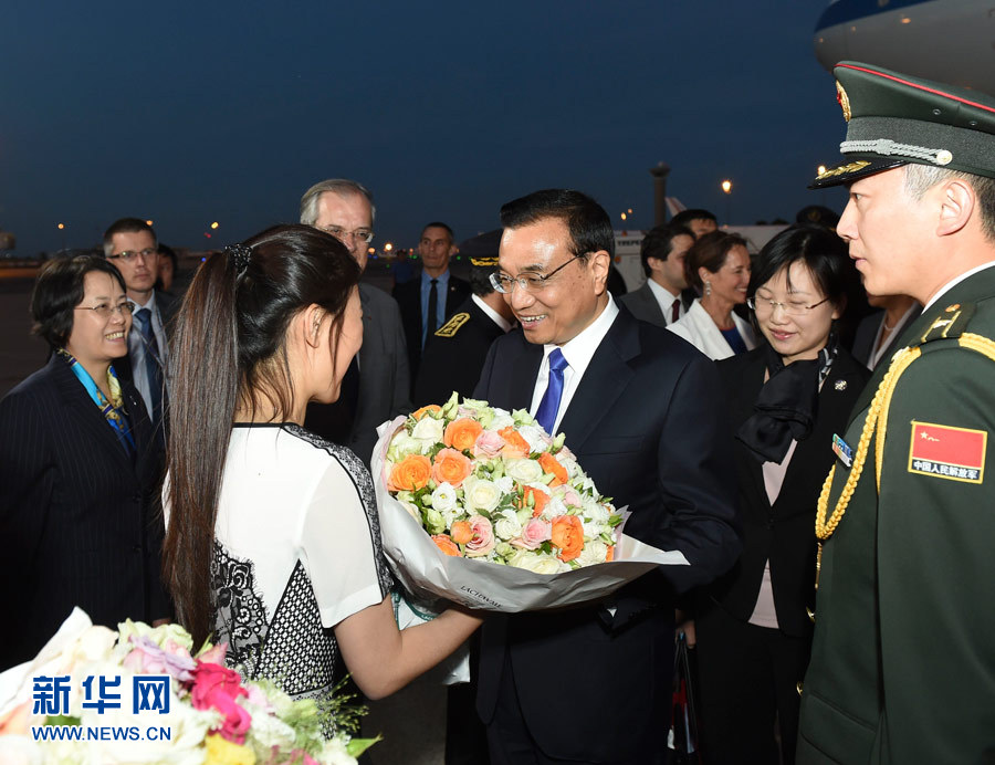 李克強総理はフランスのヴァルス首相の招待で同國を公式訪問するため、現(xiàn)地時間6月29日に特別機でパリのシャルル?ド?ゴール國際空港に到著した。程虹夫人も同行した。