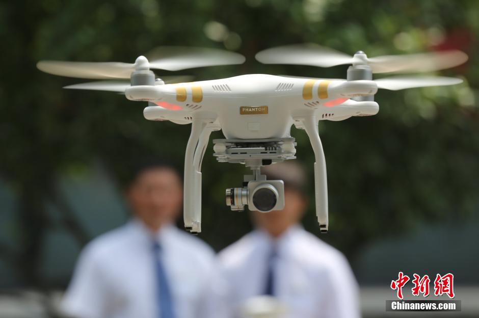 河南省鄭州市のある住宅団地管理會社の警備員は1日、敷地內(nèi)の空中パトロールのためにドローン(無人機)を操作しているところだ。ここは鄭州市迎賓路の住宅団地で、鄭州初のドローンを?qū)毪贰ⅳ饯挝镎浃筏丹藝獾刈∶瘠文郡蛞い?。中國新聞網(wǎng)が伝えた。(編集JK)