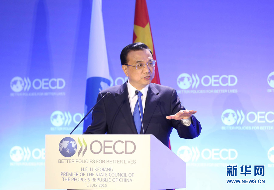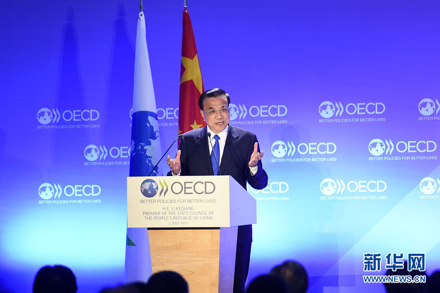 李克強総理は現(xiàn)地時間1日午前、経済協(xié)力開発機構(gòu)(OECD)本部で基調(diào)講演を行った。