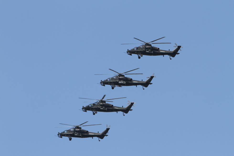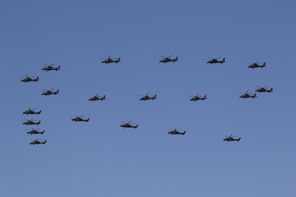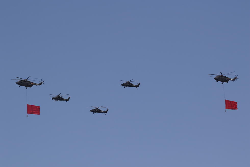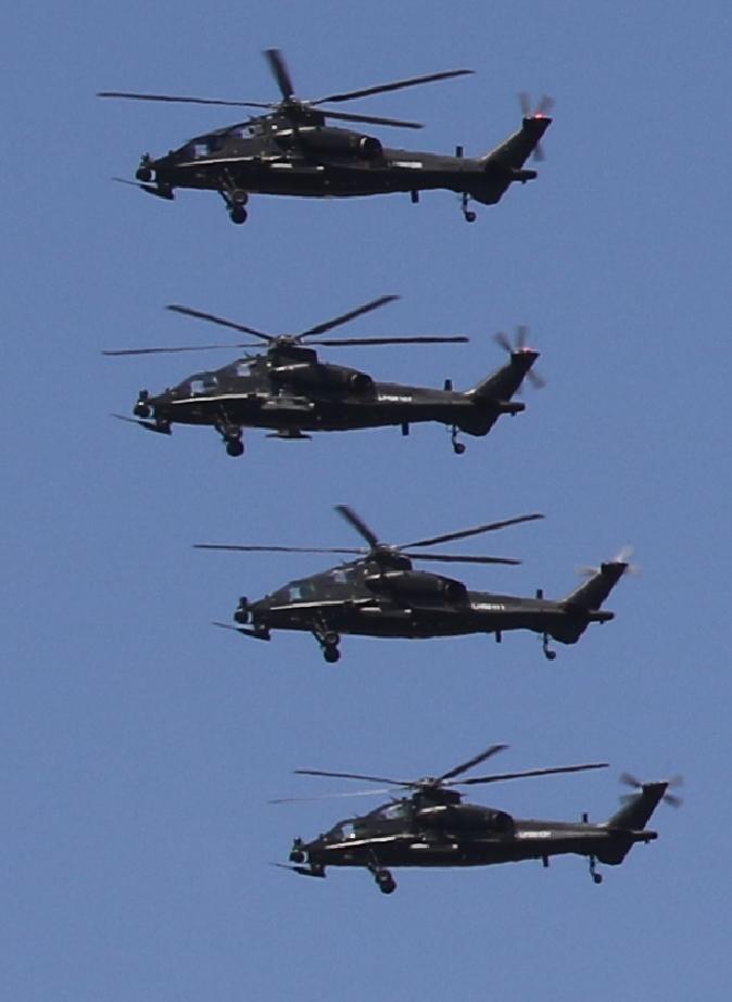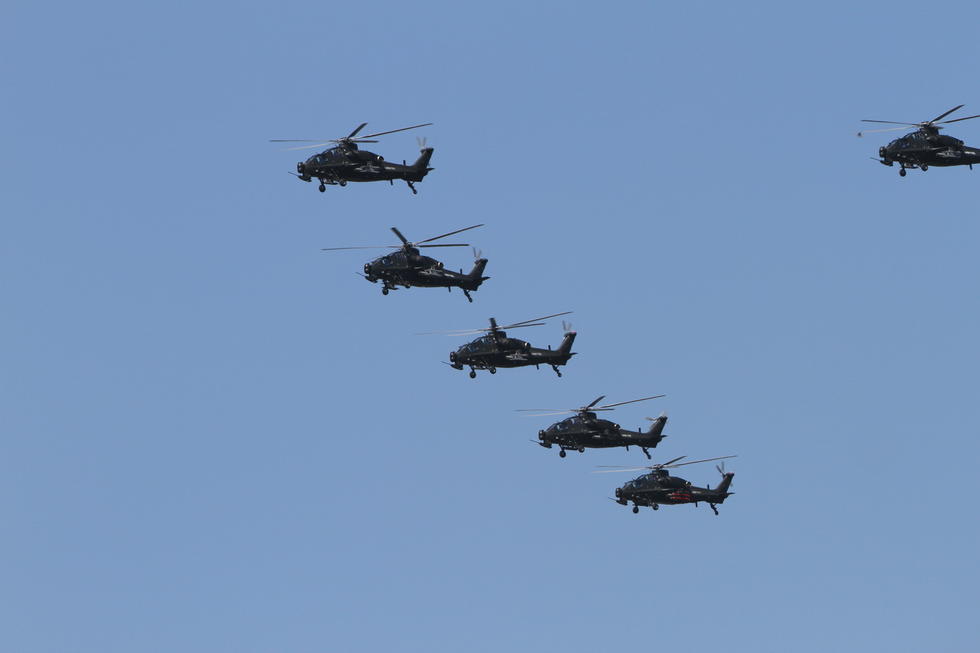 抗日戦爭(zhēng)勝利70周年記念軍事パレードの準(zhǔn)備のため、解放軍のヘリコプターが北京某地で編隊(duì)飛行訓(xùn)練を行った。直-10、直-8、直-9、直-19などが參加した。環(huán)球軍事が伝えた。(編集NA)