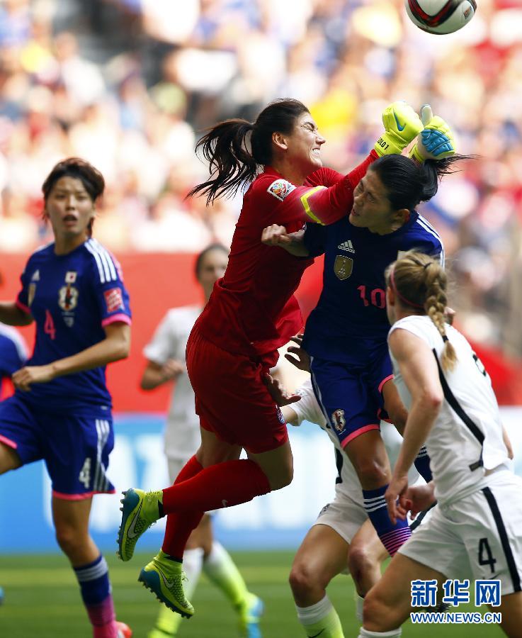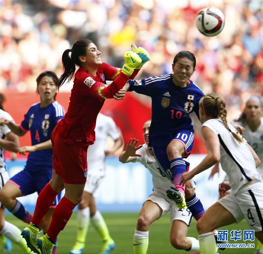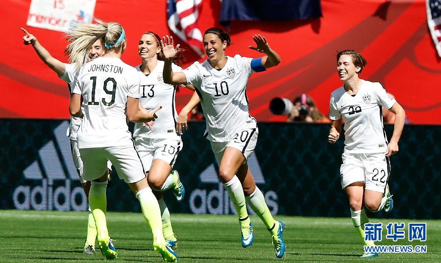 米國チームのロイド(右から2番目)がチームメイトと2つ目のゴールを祝福した。カナダのバンクーバーにあるBCプレイスで第7回國際女子サッカーワールドカップの決勝戦が7月5日に行われ、米國が5対2で日本に勝ち、優(yōu)勝した。新華網(wǎng)が伝えた。(編集JK)