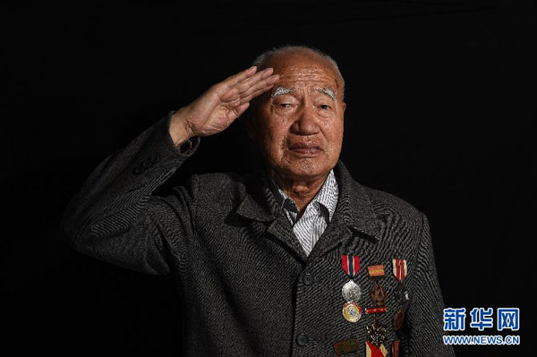 河北省承徳市の家の中にいる82歳の元抗日兵、付金山さん(7月1日撮影)。付さんは13歳で通信兵として入軍した。付さんはなぜ軍隊(duì)に入ったのか話(huà)してくれた。「6歳で母親を亡くし、家は貧しく羊の放牧の手伝いをして生計(jì)をたてていた。放牧をしているときに、延安から來(lái)た部隊(duì)に遭遇し、羊をほったらかして軍隊(duì)について行った??谷諔闋?zhēng)のほか、解放戦爭(zhēng)、抗米援朝(朝鮮戦爭(zhēng))に參加し、1966年に承徳に退役し定年に至った。