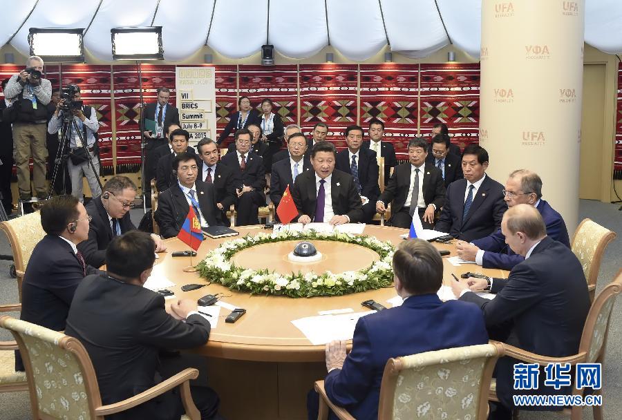 習近平國家主席は9日、ロシアのウファでロシアのプーチン大統(tǒng)領、モンゴルのエルベグドルジ大統(tǒng)領と第2回中國?ロシア?モンゴル首脳會議を行った。