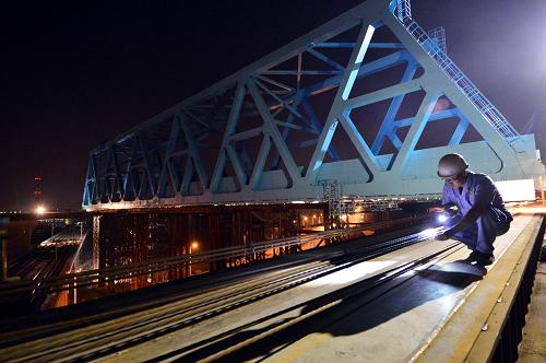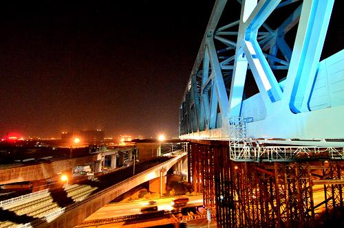 重さ2800トンに達し、水平移動距離は38メートルの國內最大級の高速鉄道の鉄鋼橋梁ー西安?寶鶏高速鉄道及び西安空港高速道路にまたがる西安?成都旅客専用線の132メートル鉄鋼橋梁は無事に所定の位置へと水平移動し、西安?成都旅客専用線の難工事が大幅な進展を見せたことを示している。新華社が伝えた。(編集JK)