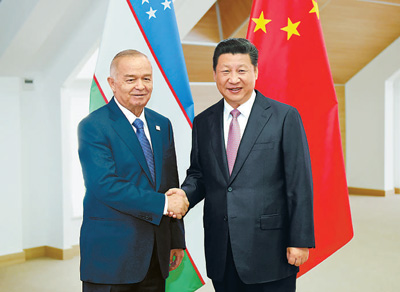 7月10日、習(xí)近平國(guó)家主席はロシアのウファでウズベキスタンのカリモフ大統(tǒng)領(lǐng)と會(huì)談した。