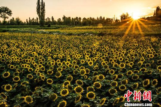 満開のひまわりが観光客の心を奪う 甘粛省敦煌 (2)