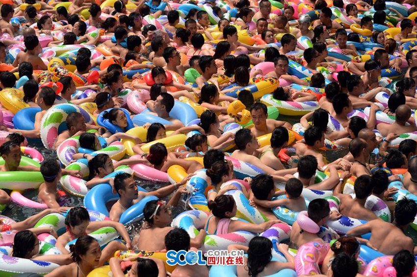 四川の各地で7月11日に厳しい暑さの日を迎え、四川省気象局のホームページによると、この日成都、眉山、楽山、內(nèi)江、遂寧、攀枝花、巴中などで最高気溫が33度に達し、達州、広安、南充、瀘州、宜賓、資陽、自貢などは気溫が35度に達した。遂寧市大英県にあるリゾート地の「中國の死?!工扦媳苁瞍嗽Lれる客がピークを迎え、8000人超の人が水に浸かり涼をとる現(xiàn)場はまるで「茹で餃子狀態(tài)」だ。(編集JK)