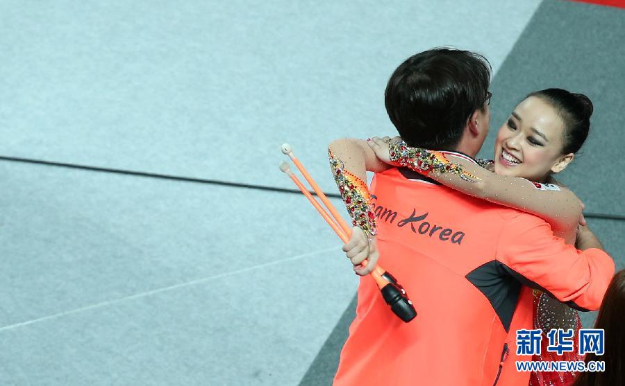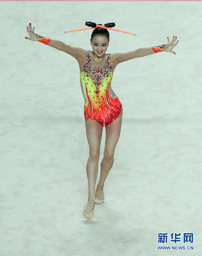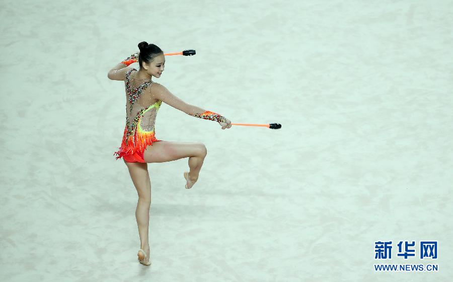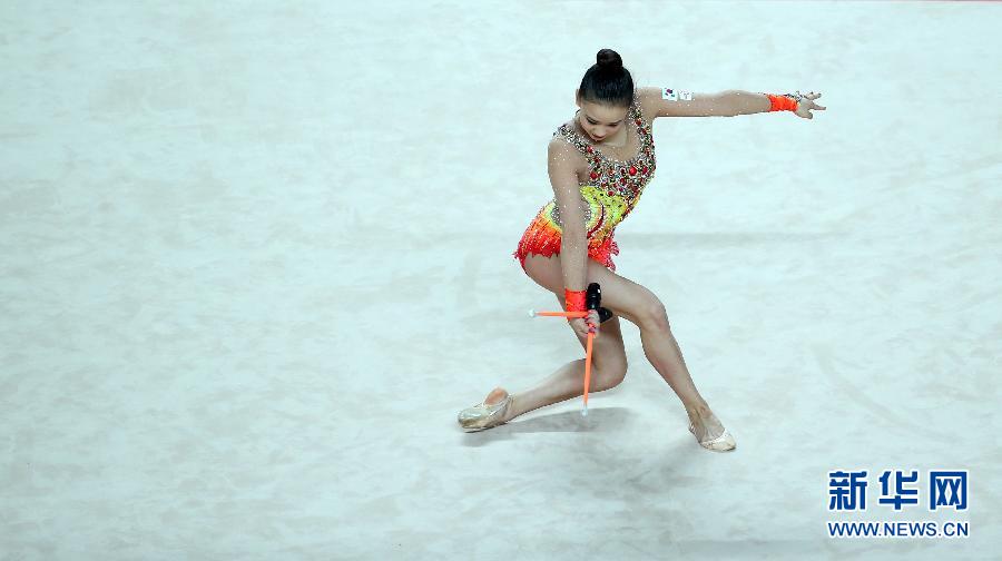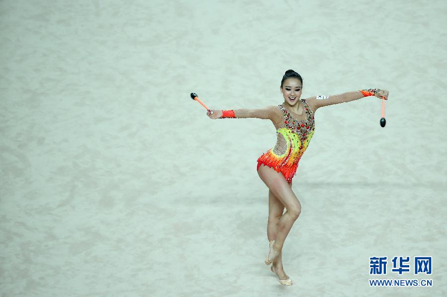 韓國の新體操選手ソン?ヨンジェのこん棒演技。7月12日、クアンジュ夏期ユニバーシアード2015において新體操の総合競技で、ソン?ヨンジェが総合得點72.550點で優(yōu)勝した。