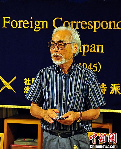 13日、東京郊外にあるスタジオ?ジブリにて外國特派員協(xié)會の會見に応じた宮崎駿氏=7月13日