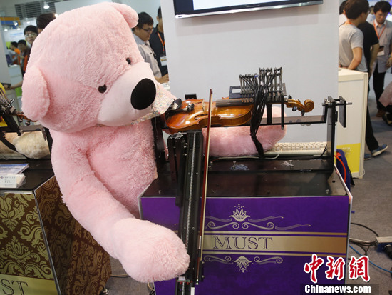 「臺灣ロボット&インテリジェンスオートメーション展(TAIROS)2015」が7月16日、臺北で開催され、産業(yè)オートメーション、商業(yè)オートメーション、インテリジェンスライフの3つのテーマを中心に、出展メーカー110社が607のブースを使用し、総展示面積は1萬3千平方メートルを超えている。寫真はバイオリンを演奏するロボット。中國新聞網(wǎng)が伝えた。(編集JK)