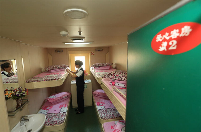 女性の乗客の外出を便利にするため、中??瓦\(yùn)公司は山東省煙臺(tái)市と遼寧省大連市の間に運(yùn)行する旅客船「葫蘆島號(hào)」に女性専用室を設(shè)置した。枕カバーやシーツはハローキティの柄で、最初の段階に10部屋を設(shè)置したという。チャイナネットが伝えた。(編集SC)
