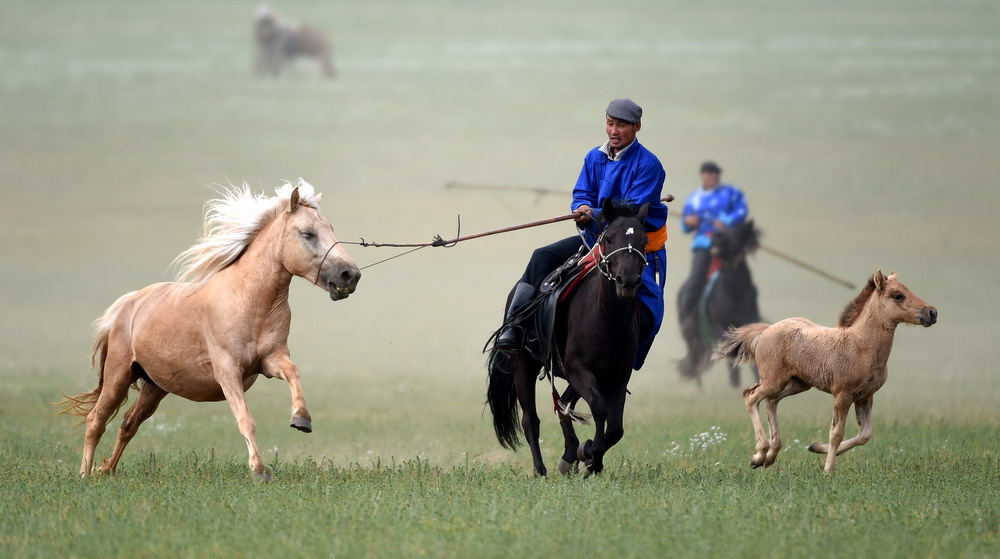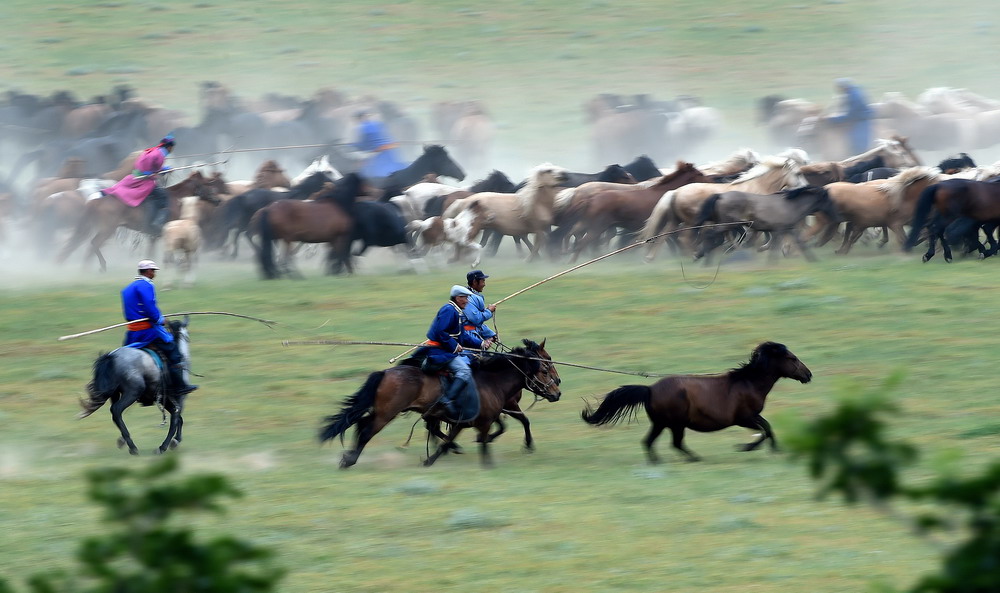 モンゴル族の騎馬選手は7月18日、馬捕りの行事を行なっている最中だ。この日、內(nèi)蒙古(モンゴル)自治區(qū)の遊牧民が草原に數(shù)百匹の馬を集め、馬捕りや馬馴らしというモンゴル族の伝統(tǒng)的な馬文化の行事が行われ、多くの観光客やカメラ愛好家を楽しませた。新華社が伝えた。(編集JK)