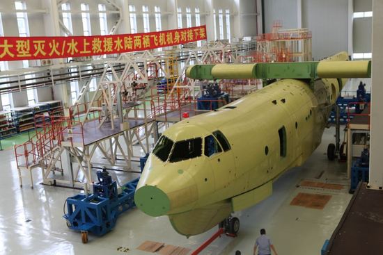 中國が獨自に開発した「3つの大型機」の一つである、大規(guī)模消火?海上救助用の水陸両用機「AG600」が17日に機體の連結(jié)を完了し、全面的に総組立の段階に入った。AG600は年末までに総組立を完了し、來年上半期に初飛行を?qū)g現(xiàn)する見通しだ。人民日報海外版が伝えた。