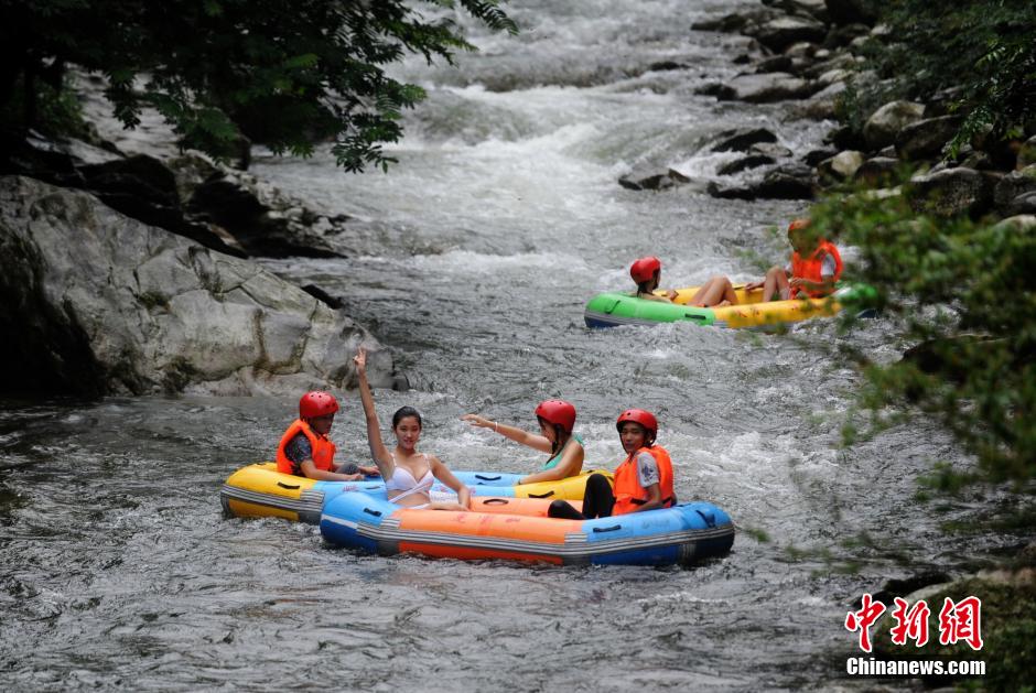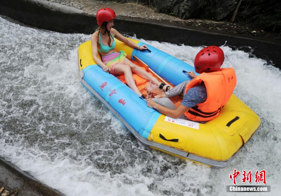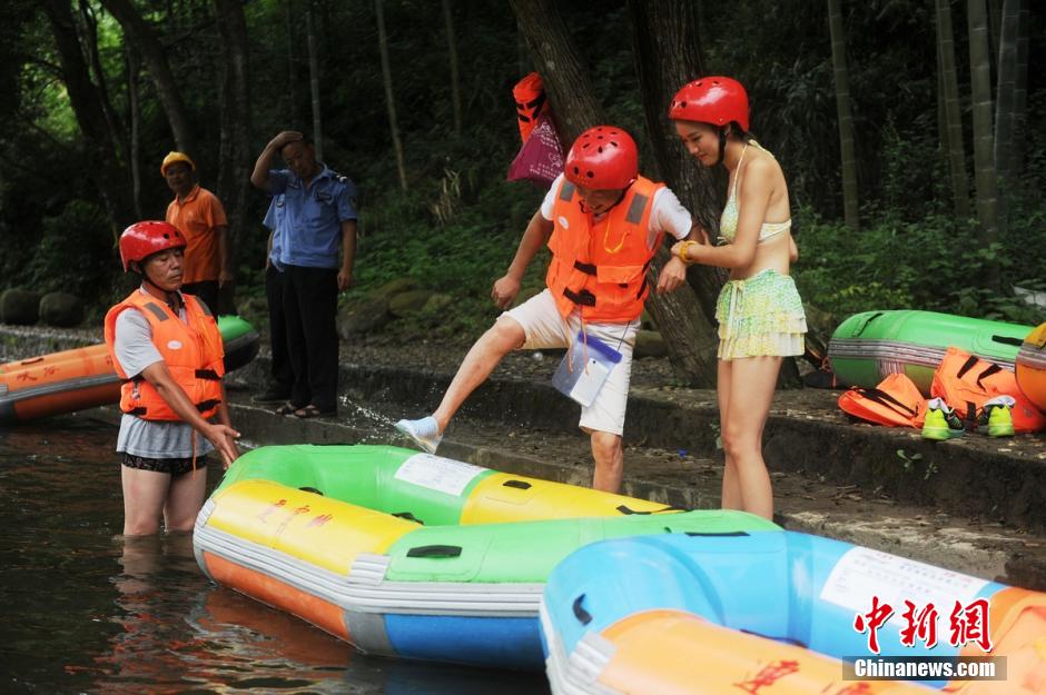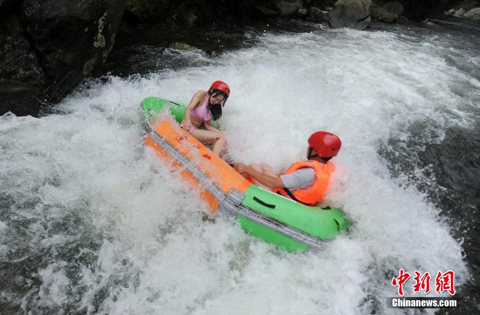 多くのビギニ美女が19日、観光客と湖南省平江県の連雲(yún)山でスリル満點(diǎn)の川下りにチャレンジした。同日、単身観光客のために同景勝地はビギニ「護(hù)衛(wèi)」アトラクションを新しく導(dǎo)入し、ビギニ美女による「護(hù)衛(wèi)」のもと、観光客は川下りを楽しんだ。中國新聞網(wǎng)が伝えた。(編集JK)