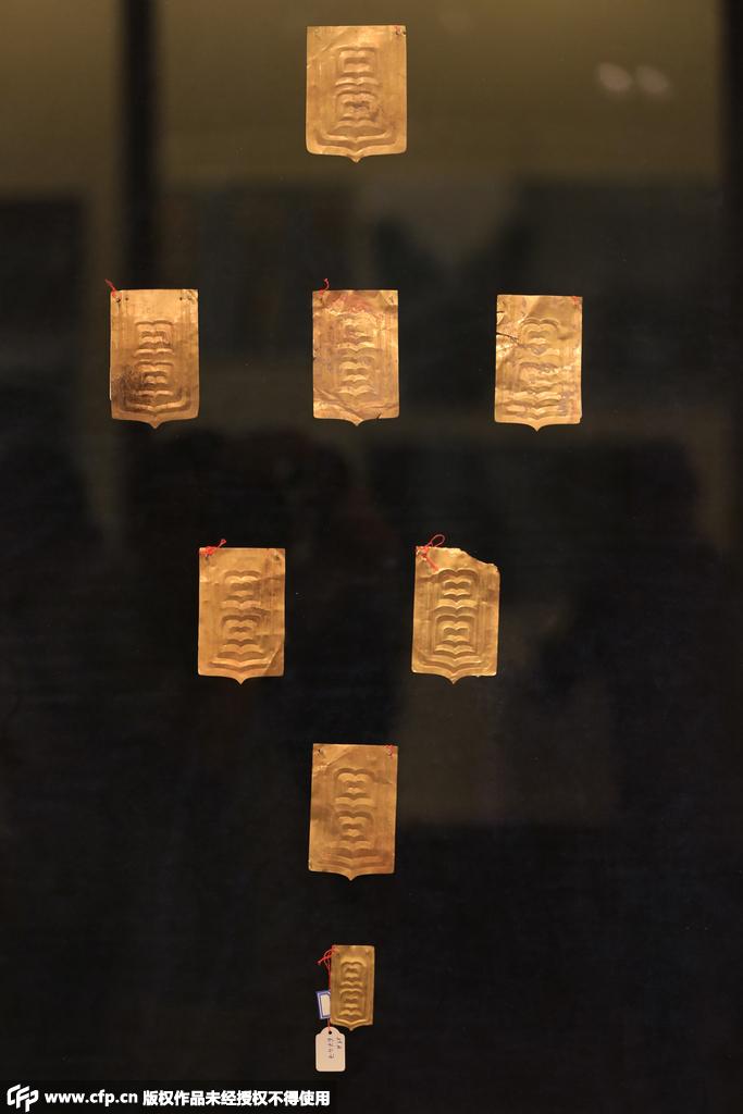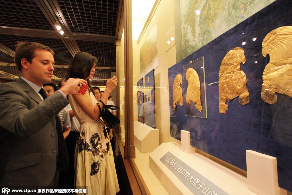 甘粛省博物館は20日午前、どこかで見覚えのある特殊な「親族」を迎えた。それらは展示するための32點の春秋時代の秦朝の金の裝飾品で、甘粛省禮県の大堡子山遺跡から出土し、秦朝初期の文化を研究するのに重要な文化財でもある。20年の時を経てフランスから海を渡り、今回初めて中國人の前に展示されることになった?!钢袊温暋工螆蟮坤蛞盲筏迫嗣窬W(wǎng)が伝えた。(編集JK)