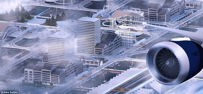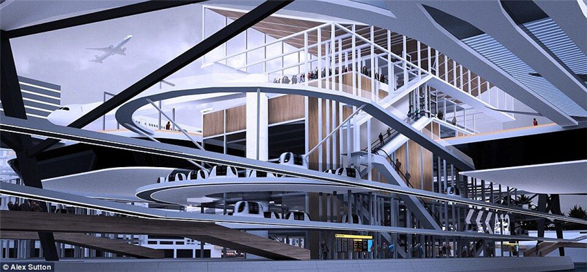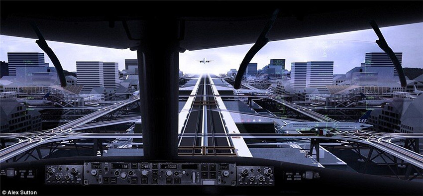 アレックスさんの構(gòu)想によると、未來(lái)の空港は都市の一部になる?;呗筏辖êB物の屋上に敷設(shè)される。乗客は通勤車に乗り、空港と都市の間を自由に行き來(lái)できる。ターミナル、滑走路、手荷物預(yù)かり所は、都市のあちこちに分散される。