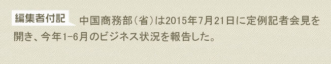 2015年上半期の中國(guó)の輸出入額は前年同期比6.9%減少し、輸入は15.5%の減少、輸出は1%の増加だった。