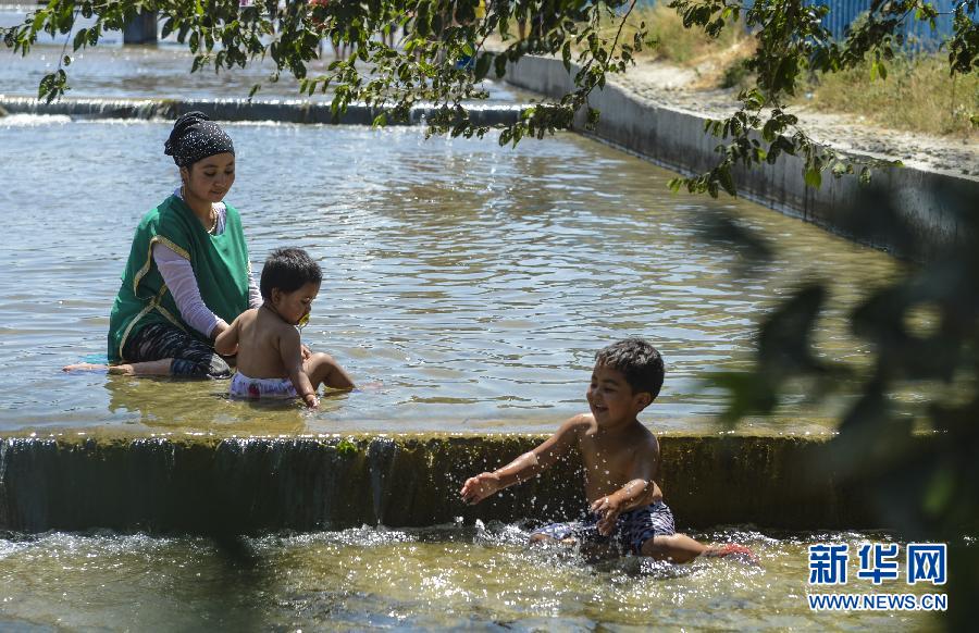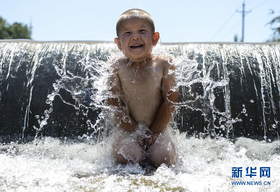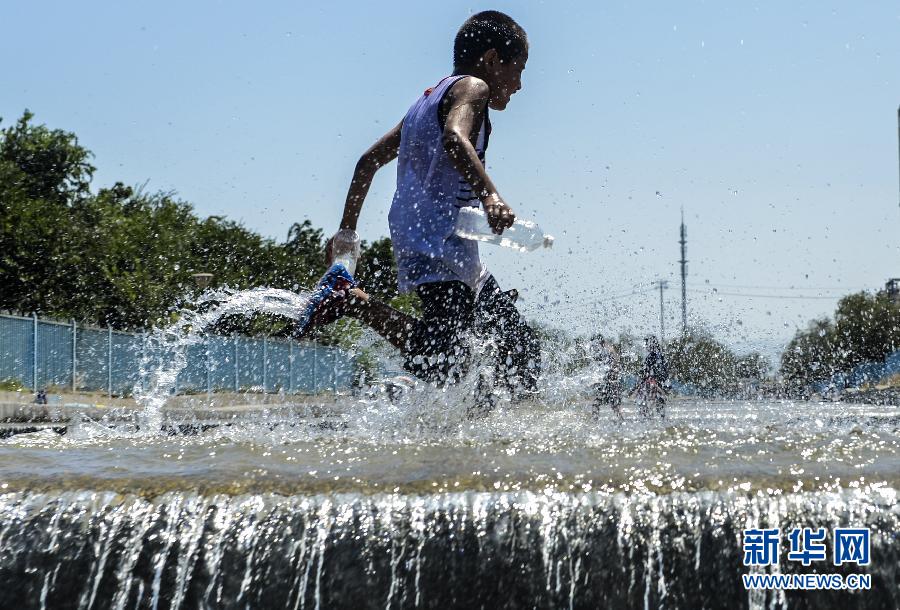 新疆維吾爾(ウイグル)自治區(qū)ウルムチ市珠江路付近の水路で小さな子供が水遊びをして暑さを凌いでいる。同市中心部の最高気溫は40度を超え、この一週間で新疆のほとんどの地域では40度近くの高気溫が続いている。一部の地域では史上最高気溫を記録した。新華社が伝えた。(編集JK)