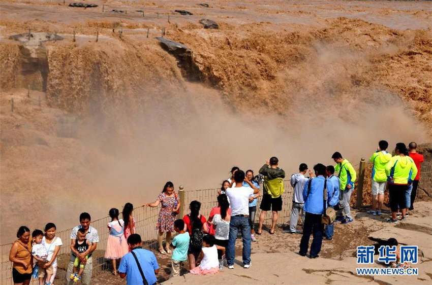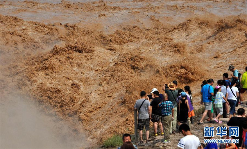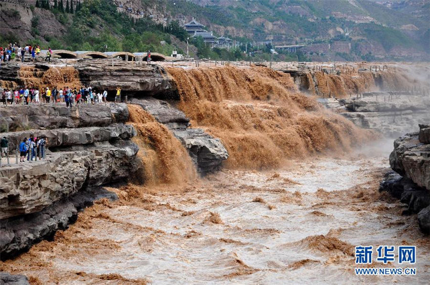 22日、上流域での激しい雨により、山西省吉県と陝西省宜川県の境にある黃河の壺口瀑布は夏の増水を迎えた。濁流がすさまじい勢いで流れ、多くの観光客と撮影愛好家を引きつけた。チャイナネットが伝えた。(編集SC)