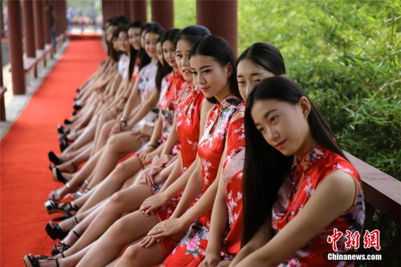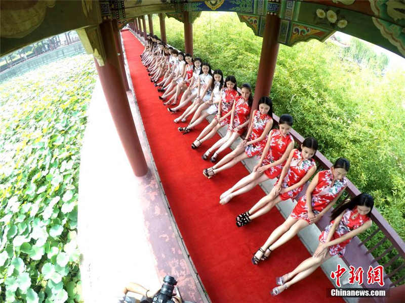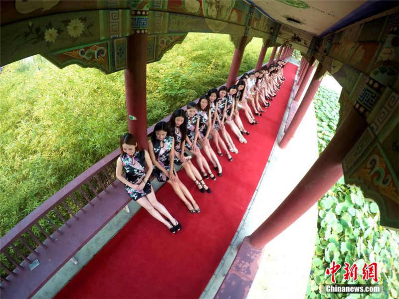ミス?ビキニ?インターナショナル2015年の河南地區(qū)決勝の出場者が25日、河南省登封市白沙湖にある文恵山荘に集まった。チャイナドレスに身を包んだ出場者は、蓮の池に臨んだ木の腰掛けに座り、セクシーな美腳を披露した。蓮の池周囲の柳の緑とずらりと並んだ美しい肢體とが互いに引き立てあい、ため息の出るような絵姿を映し出した。中國新聞網(wǎng)が伝えた。(編集KS)