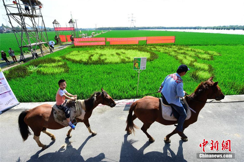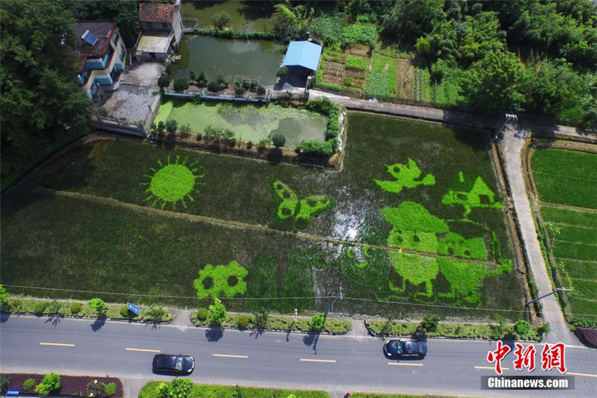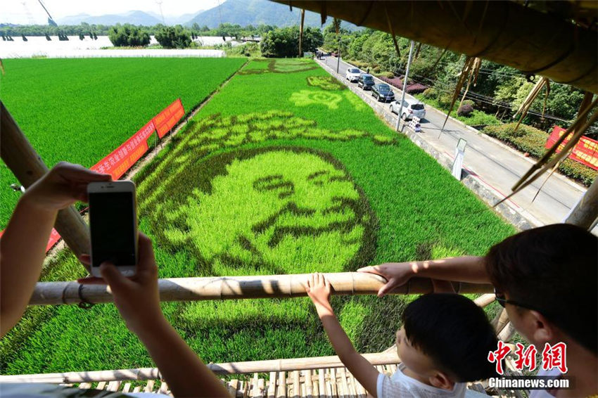 中國(guó)杭州市第一回田んぼ漫畫(huà)フェアが、26日杭州市余杭區(qū)中泰村にある農(nóng)場(chǎng)で開(kāi)かれた。その中、浙江大學(xué)農(nóng)業(yè)科學(xué)技術(shù)グループは水田に色の違う四色の稲を植えて作り上げた漫畫(huà)作品を披露し、訪れた観光客に伝統(tǒng)的な農(nóng)業(yè)とは違った味わいを體験してもらった。チャイナネットが伝えた。(編集SC)