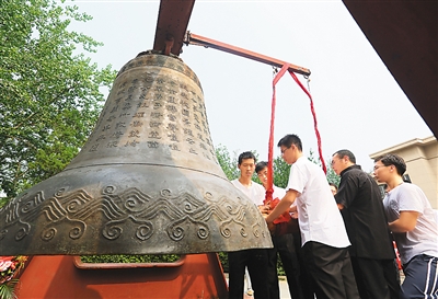 | 鐘を鳴らす関係者(南開(kāi)大學(xué)にて) |