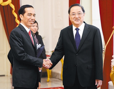 ジョコ大統(tǒng)領との會談で兪主席は「中國側はインドネシア側と積極的に努力して、両國首脳間の共通認識をしっかりと実行に移し、戦略面の相互信頼を一層深化し、交通インフラ、生産能力、投資、貿易分野の実務協(xié)力を一層深化し、科學技術、文化、観光分野の交流を強化し、両國関係の一層の発展を後押しすることを望んでいる」と述べた。