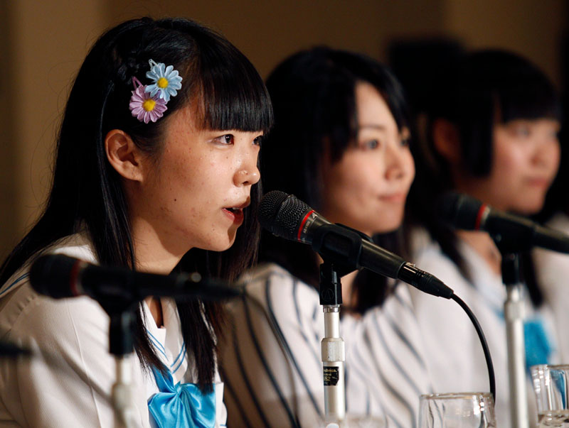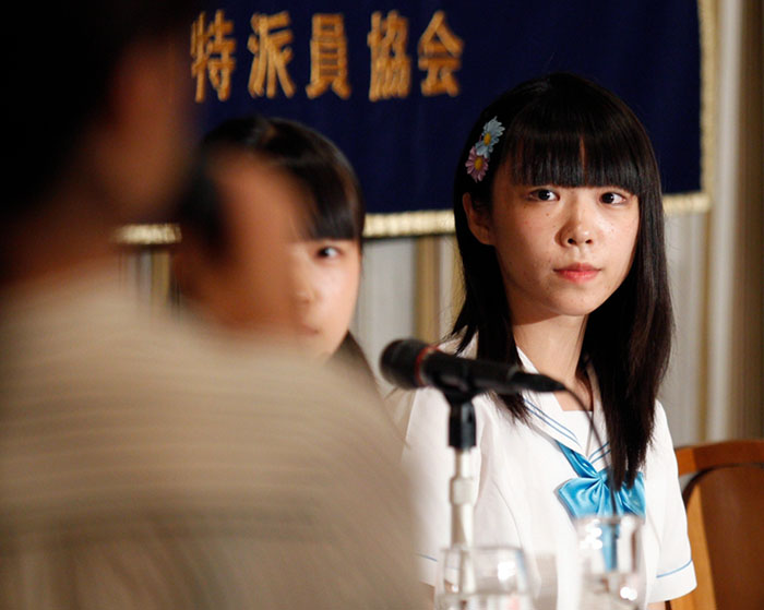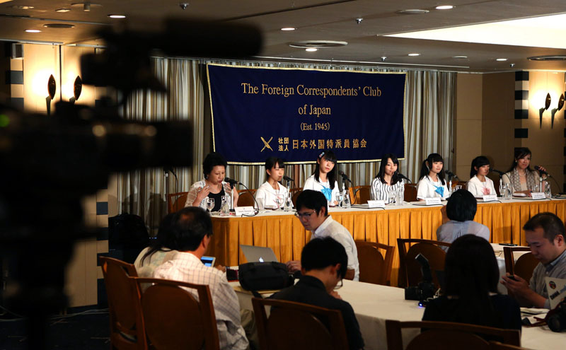 日本の東京で現(xiàn)地時(shí)間の7月28日、日本のアイドルグループ「制服向上委員會(huì)」が東京の外國(guó)人記者クラブで脫原発の歌を披露した。記者會(huì)見に參加し、公の場(chǎng)で政府の戦爭(zhēng)法案を批判した。環(huán)球網(wǎng)が伝えた。(寫真出典:AP通信)(編集JK)