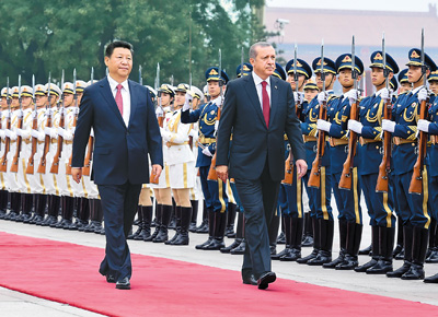 會(huì)談を前に習(xí)主席は自民大會(huì)堂東門(mén)外広場(chǎng)でエルドアン大統(tǒng)領(lǐng)の歓迎式典を催した