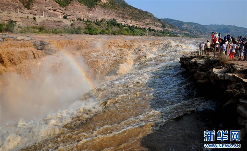 30日、山西省臨汾市吉県の壺口瀑布で、半分は澄んだ水半分は濁った水という奇観が現(xiàn)した。滝の上流の陝西省內(nèi)にある雲(yún)巖河流域で豪雨が降ったため、壺口瀑布の西側(cè)では濁った水が渦巻き、東側(cè)では白い水が流れるという奇観がお目見(jiàn)え、多くの観光客を引きつけた。チャイナネットが伝えた。(編集SC)