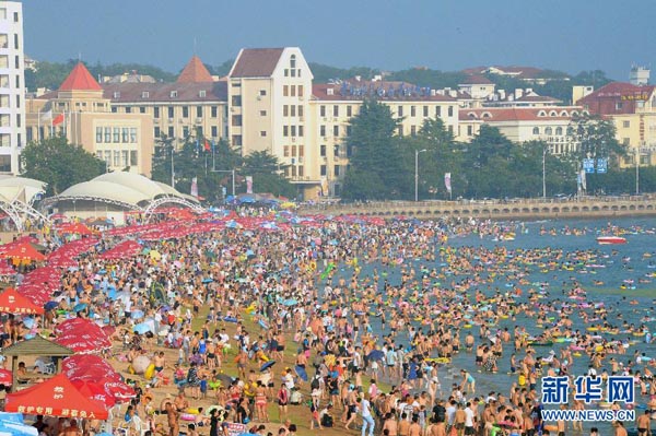 山東省青島市の第一海水浴場では7月30日、水に浸かって涼をとる人でぎっしりだ。青島市では耐え難いほどの猛暑が連日続き、高気溫が同市の海水浴場を人で埋め盡くした。市民や観光客がこぞって海に入り暑気払いをしていた。新華網(wǎng)が伝えた。(編集JK)