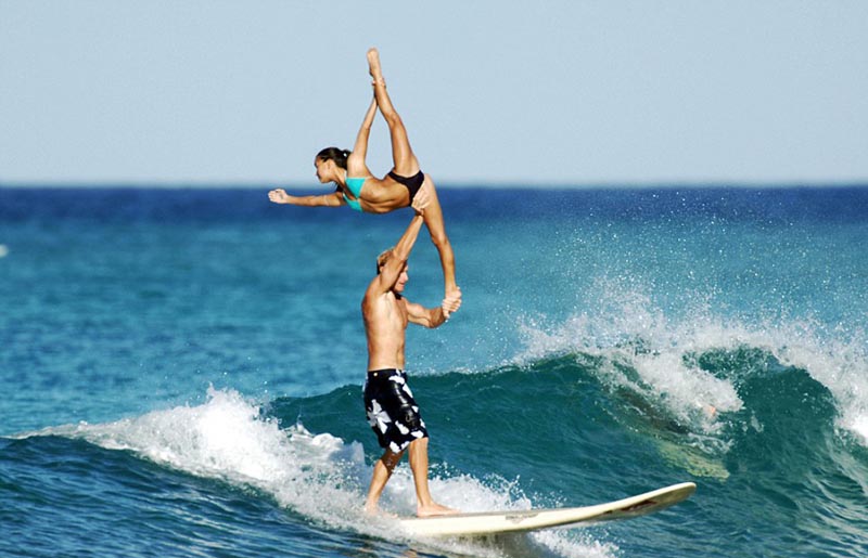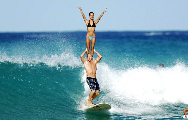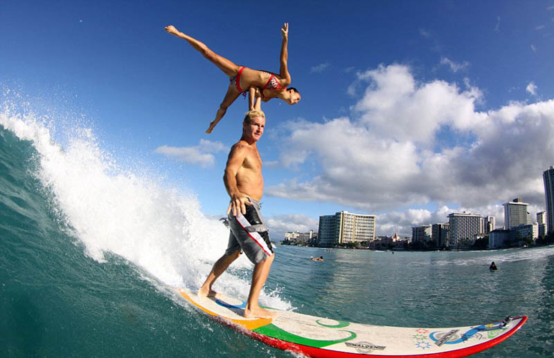 ハワイのワイキキビーチでこのほど、ペアによる真新しいサーフィン競技ショーを開催した。ローレン?オイエさんとチャック?インマンさんという一組の超人ペアがサーフィン競技中、體操とサーフィンを完璧に組み合わせた。ボードの上で想像を絶する高難度のリフトを行ない、満場の喝采を浴びた。英國デイリー?メールの報道を引用して、國際在線が伝えた。(編集JK)