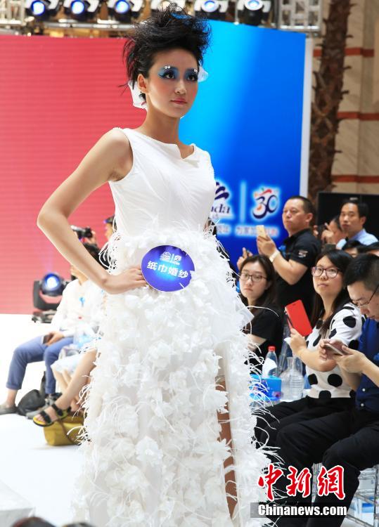 大學(xué)生たちの作品もビジュアル効果があるほか、濡れても破れにくい強(qiáng)い素材のペーパータオルで、ビギニウェディングドレスを作成、エレガントな感性に観衆(zhòng)は目を見張った。會場において、蘭氏は「ペーパータオルのウェディングドレスが新たなファッションの指標(biāo)になるかも知れない」と大膽に予言した。寫真はペーパータオルのビギニウェディングドレス。エレガントな感性で観衆(zhòng)は目を奪われた。中國新聞網(wǎng)が伝えた。(編集JK)